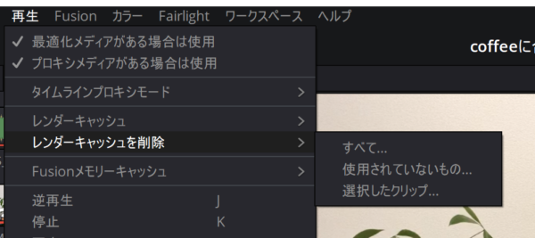 先ほどから使用しているメニューの「再生」から「レンダーキャッシュを削除」という項目がありますので、